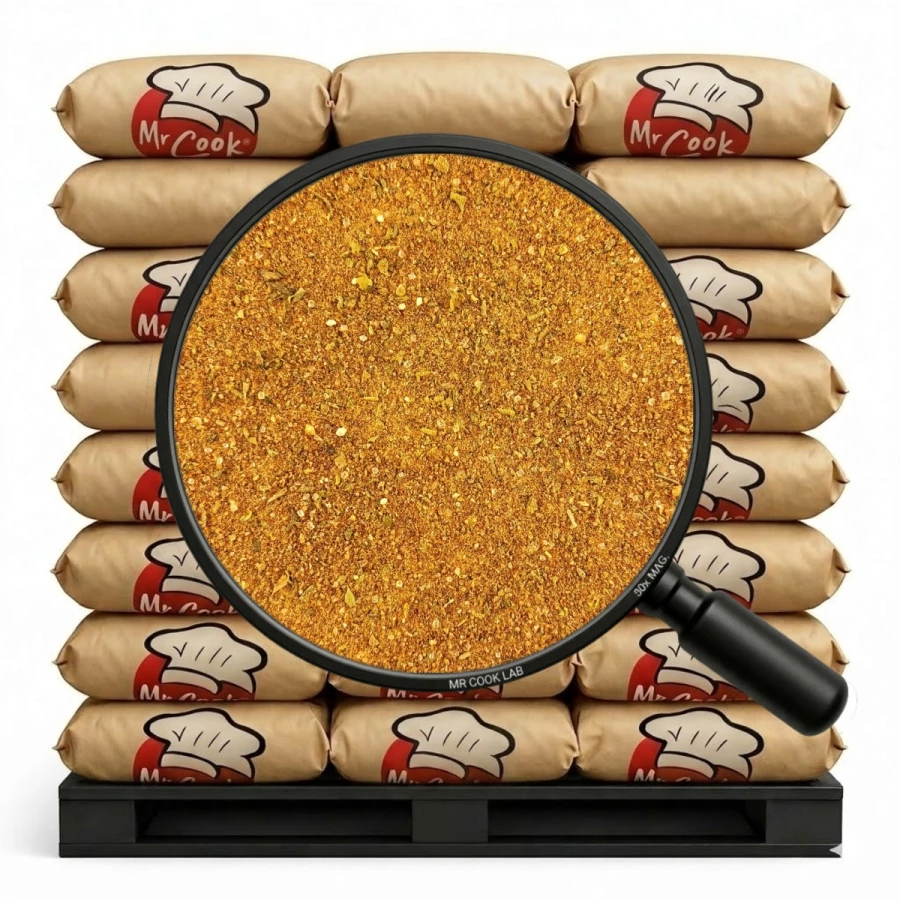 mąka pszenna, sól, cukier, papryka słodka (2,00%), skrobia pszenna, kurkuma, suszone pomidory (1,00%), czosnek (1,00%), skoncentrowany sok z buraka (60% maltodekstryna, 40% skoncentrowany sok z buraka); cebula (0,70%), bazylia (0,60%), regulator kwasowości: kwas cytrynowy.