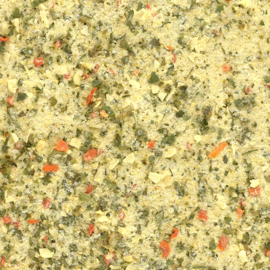 sól, maltodekstryna, wzmacniacz smaku: glutaminian sodu, hydrolizat białka sojowego (roślinnego), cukier, marchew, pietruszka nać, cebula, pietruszka, tłuszcz palmowy, kurkuma, pasternak, regulator kwasowości: kwas cytrynowy, pieprz czarny.