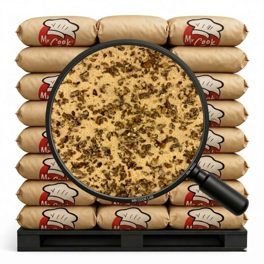 mąka pszenna, skrobia pszenna, serwatka (z mleka), wzmacniacze smaku: glutaminian monosodowy, 5' rybonuklotydy disodowe; maltodekstryna, tłuszcz palmowy, zasmażka (mąka pszenna, tłuszcz roślinny (palmowy), sól, suszone grzyby 4%, hydrolizat białka sojowego, cebula, aromaty, pietruszka nać, barwnik: karmel E150c; pieprz czarny, regulator kwasowości: kwas cytrynowy.